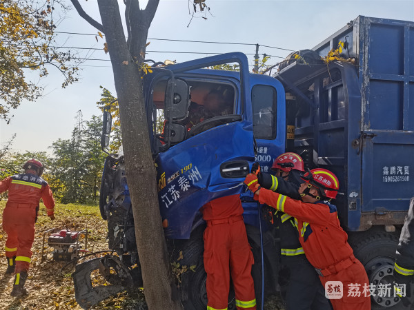 在抵达现场之后,经侦察发现,货车车头与路边的树木发生了碰撞,车头严重变形,司机的腿部被座位和方向盘紧紧卡住,无法动弹,痛苦难以忍受。