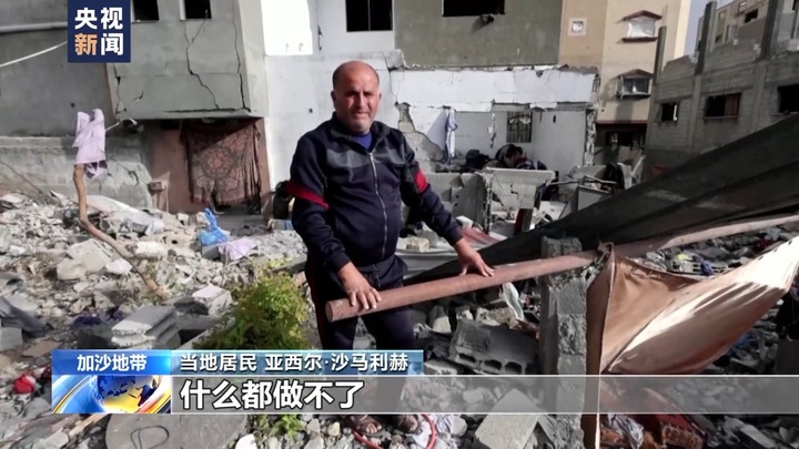 当地居民 亚西尔·沙马利赫:我试图(从废墟中)找到一些物品,但这都是徒劳的,我们需要用工具和机器把东西拿出来。什么都做不了,我们有希望,却什么都做不了。