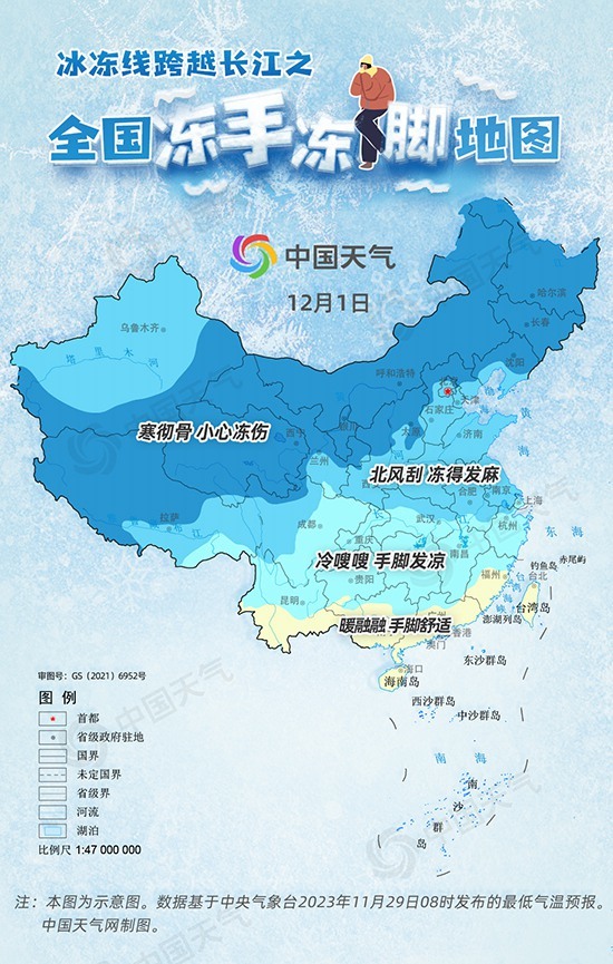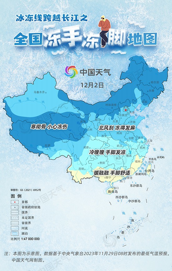 冰冻线跨越长江,四分之三国土将体验冻手冻脚