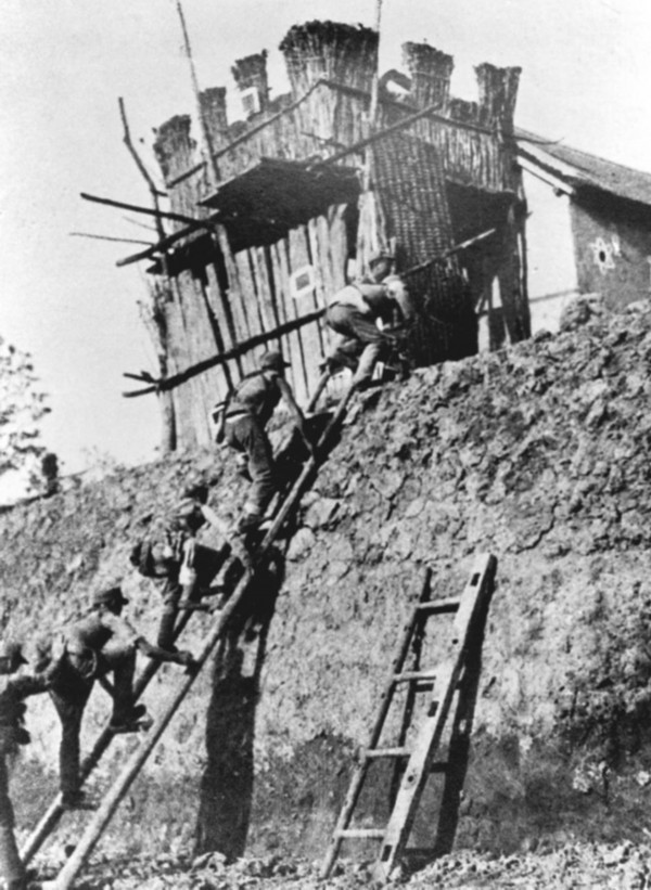 ↑ 抗日战争期间,新四军在苏北冰天雪地中行进。
