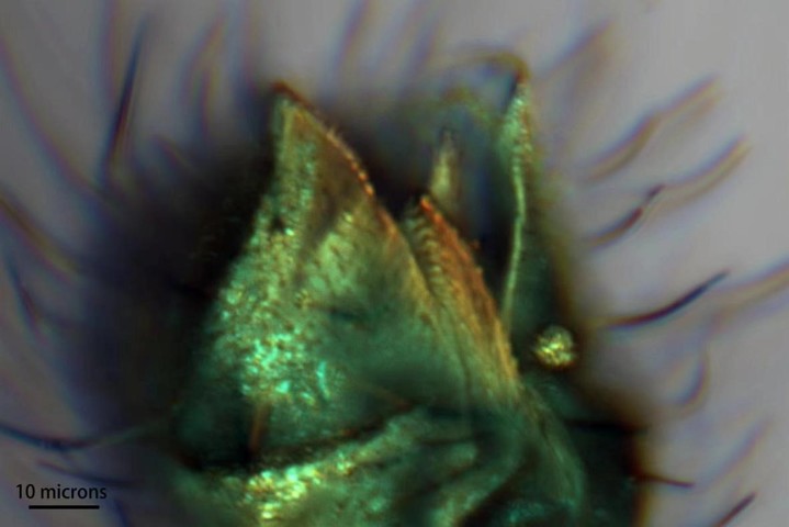琥珀中雄蚊口器细节图,比例尺:10μm