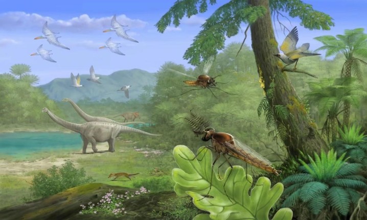 早白垩世黎巴嫩琥珀蚊子化石的生态复原图