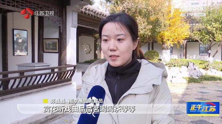 南京愚园讲解员郭晶晶介绍,花窗被称为园林之眼,纹样复杂多变。这座春晖堂可以说是个玻璃房、阳光房。园主陪伴他的母亲赏花听戏品茗喝茶等,还举行过比较重要的三寿盛会。三寿指的是欧阳修、苏东坡和白居易。通过美丽的花窗看到窗外的景色,金黄的银杏、火红的枫叶……