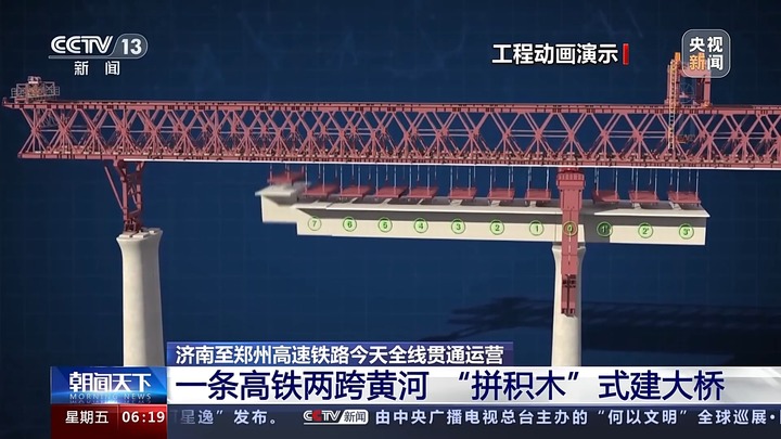济郑高铁两跨黄河,长清黄河特大桥和郑州万滩黄河公铁大桥,这两座黄河上建的大桥,是济郑高铁建设中的难点。面对施工难题,建设人员想出了化整为零“拼积木”的办法。