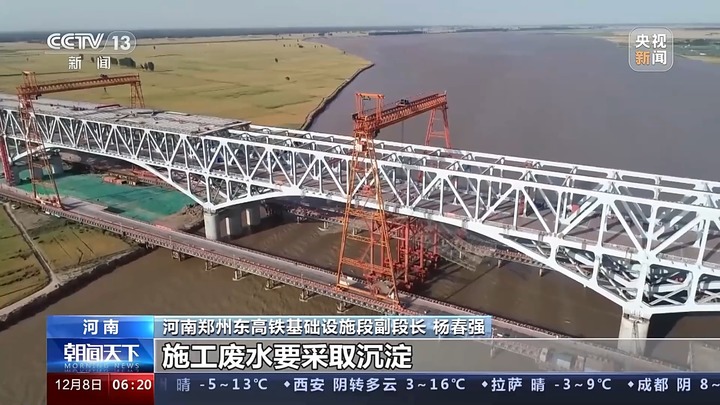 河南郑州东高铁基础设施段副段长 杨春强:建设期的动火作业,要设置保护棚,防止焊渣遗落到我们黄河里边,施工废水要采取沉淀、循环利用的方式,减少废水的产生。
