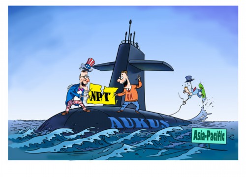 美英澳三国核潜艇合作涉及核武器国家向无核武器国家转让大量武器级高浓铀,构成严重核扩散风险。这与《不扩散核武器条约》的目的和宗旨相悖,是赤裸裸的双重标准。