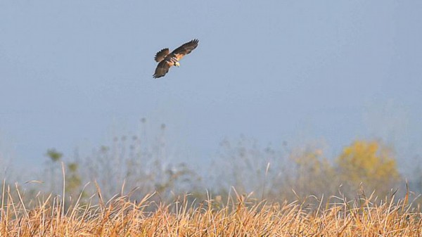 在兴化万亩荷塘景区东芦苇荡,飞翔的白头鹞。王万才 摄