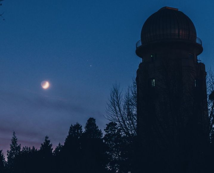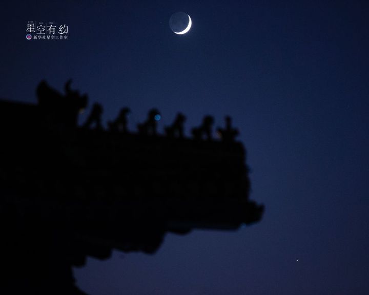 这是2018年10月12日在江苏南京明故宫遗址公园拍摄的木星合月景观。新华社发(苏阳摄)