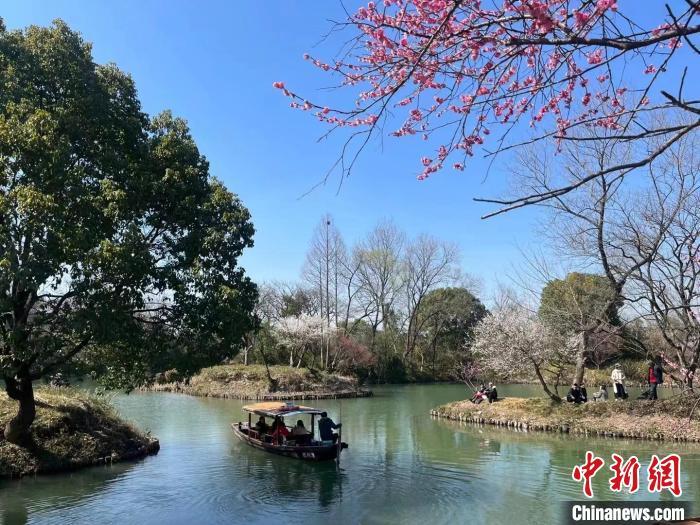 2月,西溪湿地梅花盛开,吸引游人观赏。 奚金燕 摄
