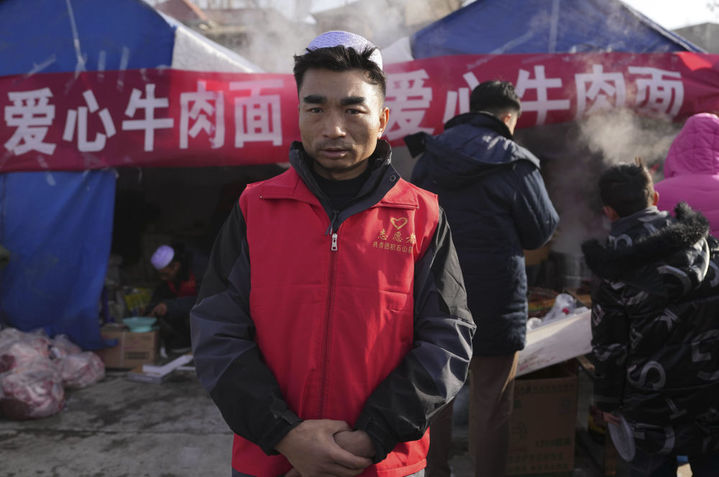 在积石山县大河家镇大河村安置点,记者在排着长队的爱心牛肉面供应点见到了36岁的兰州一家餐饮企业负责人马忠明。开了20多年牛肉面馆的他在地震后两小时内,便集结了自己两家牛肉面馆的员工,备好物资,赶往受灾最严重的大河村。震后八小时,大河村安置点内已经升腾起了牛肉汤的热气,马忠明和同伴也成为最早到达灾区的社会救援力量之一。