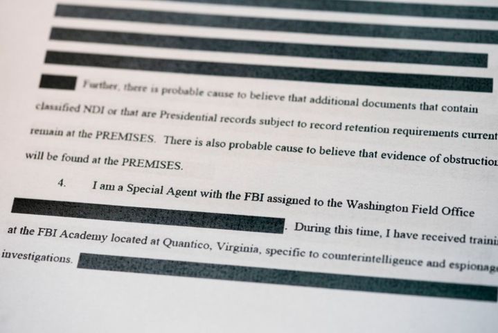 这是2022年8月26日拍摄的美国联邦调查局申请搜查前总统特朗普住所海湖庄园时向法院提交书面证词的部分内容。新华社记者刘杰摄