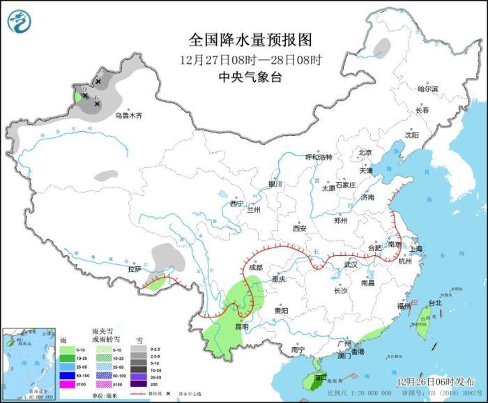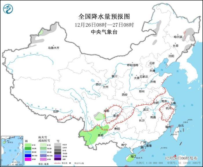 图1 全国降水量预报图(12月26日08时-27日08时)