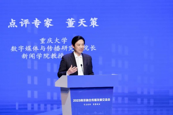 “AI发展太快,不断重构世界。从这次大会中可以得出几个关键词:创新场景、技术赋能、人文赋魂、守正创新。展望2024年的南京融合传播,一定会再上新台阶,再创新辉煌!”——董天策