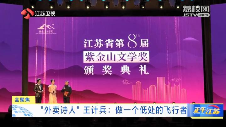 “《赶时间的人:一个外卖员的诗》作者王计兵。以游吟诗人的笔法,写出为生存奔波的生活际遇与劳动者的尊严。有鉴于此,授予上述作品江苏省第8届紫金山文学家诗歌奖。”