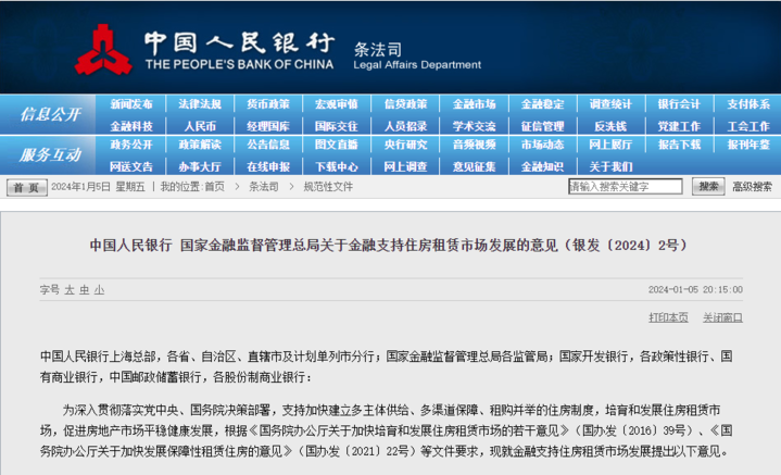 中国人民银行 国家金融监督管理总局关于金融支持住房租赁市场发展的意见(银发〔2024〕2号)