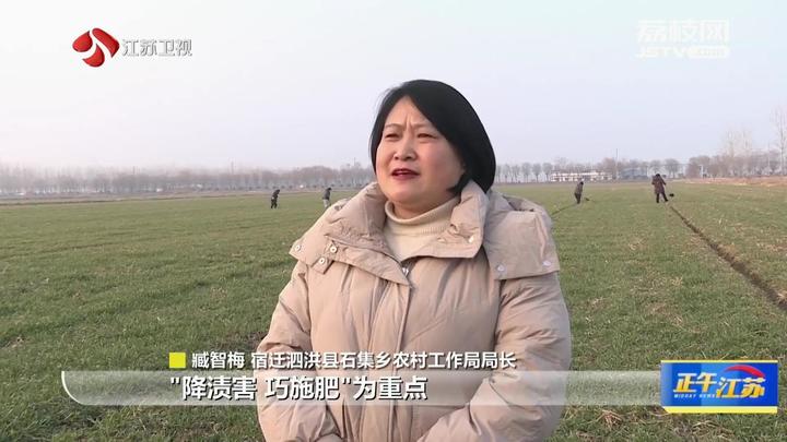 宿迁泗洪县石集乡农村工作局局长臧智梅说,田间管理主要是以“降渍害、巧施肥”为重点,有条件的地方可以进行冬灌,对缺苗断垄的地方还可以进行补种,实现小麦健康成长,确保安全越冬。