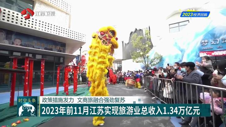 市场繁荣离不开文旅主管部门的持续发力和有力引导。2023年,江苏省文化和旅游厅紧抓“江苏文旅15条”的落地落实,及早下达9000万元文旅产业发展专项资金,支持130个文旅项目开发建设;精心举办好乡村旅游节、大运河文化旅游博览会,“水韵江苏·有你会更美”文旅消费推广季更是持续全年,有效促进了江苏文旅市场加快复苏,助力全省经济运行持续向好。最新数据显示,2023年1-11月,江苏共接待境内外游客9.2亿人次,实现旅游业总收入1.34万亿元,按可比口径分别较2019年同期增长12%和4%。另据银联商务数显示,去年前十一个月,全省文旅消费总额4893.10亿元,同比增长36.7%,占全国近1/10,居全国第一。