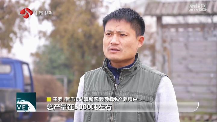 宿迁市湖滨新区皂河镇水产养殖户王委说:“整个池塘的水是循环的,对外界不产生任何污染,总产量在5000吨左右,如果是十块钱一斤产值就一个亿。”