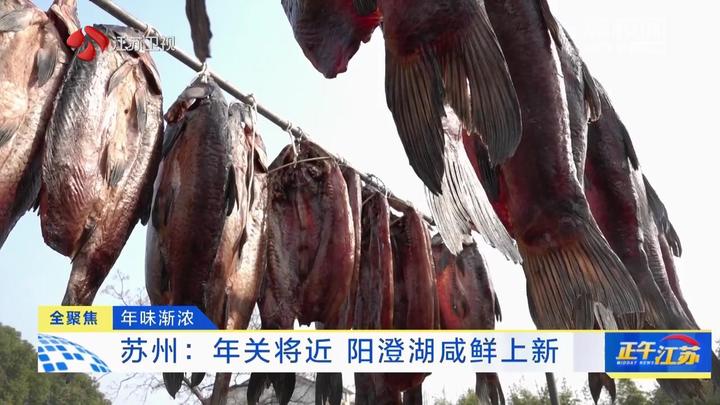 天气晴好,阳澄湖边的店家们纷纷晒出各种咸货,年味儿扑面而来。其中,地产的大青鱼,是年货中的重头戏。