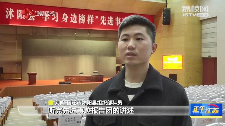 宿迁市沭阳县组织部科员刘闯说:“听完先进事迹报告团的讲述,我深受教育、深感触动。我们要向榜样学习、向先进看齐,爱岗敬业,做时代先锋。”