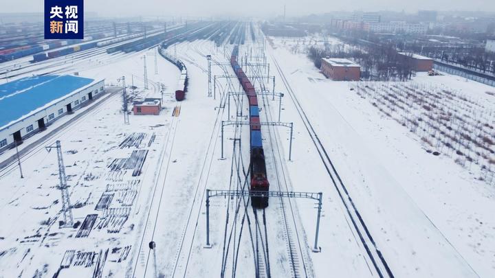 1月10日,一列满载着汽车、汽车零配件、工业机器等货物的中欧班列从阿拉山口口岸缓缓驶出,开往波兰马拉舍维奇。