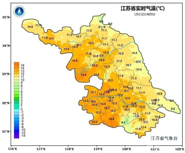 据江苏省气象台最新发布的消息:在冷空气余威下,今天早晨六点气温普遍都在0℃以下。但白天气温迅速回升,在阳光助力下,下午两点齐刷刷突破了10℃,温度最高的地方接近15℃。