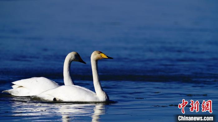 资料图:天鹅在青海省海西州巴音河上游弋。 巴图纳生 摄