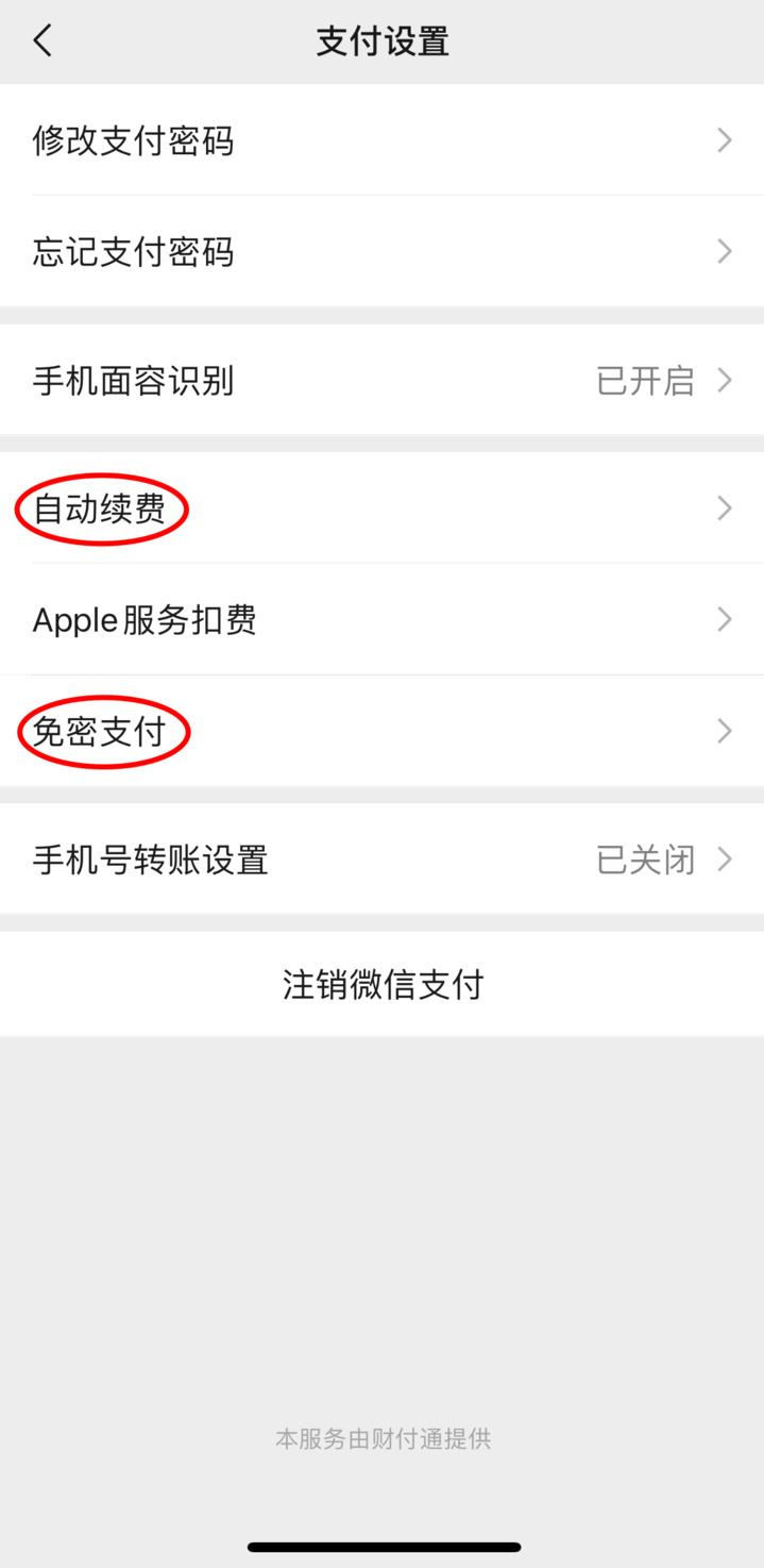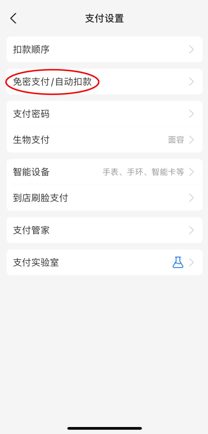 如果是支付宝,则选择右下角“我的”,再点开右上角“设置”的齿轮状图标,选择“支付设置”,点开“免密支付/自动扣款”,可以看到所有已签约免密支付/自动扣款的服务项目。打开其中一项,能够查看开通时间、扣款方式等,如果不希望继续免密支付,则点击最下方的“关闭服务”。