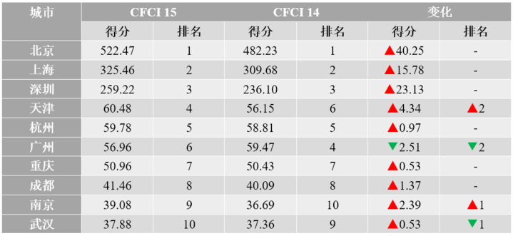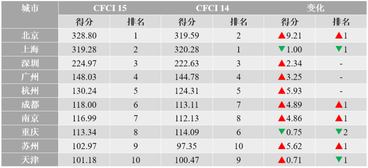 表4 第15期CFCI金融市场规模排名TOP 10