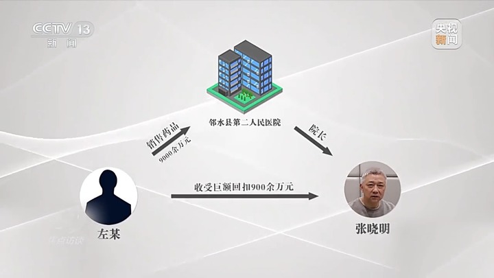 收到好处后,张晓明则利用职权便利,在药品进院审批、药款结算等方面给予左某帮助。十几年间,左某向邻水县第二人民医院仅销售药品就达9000余万元,张晓明则心安理得地收下了巨额“回扣”900余万元。