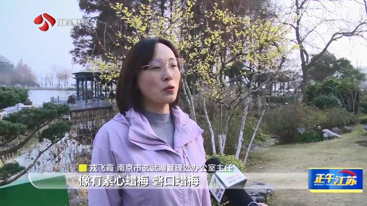 南京台记者侯轩:“我现在所在的位置是玄武湖的樱洲长廊。大家看到我身后的这两株蜡梅,还有一些含苞待放,微风吹过已经能闻到一些淡淡的花香。相信过不了多久一定会开满枝头。”