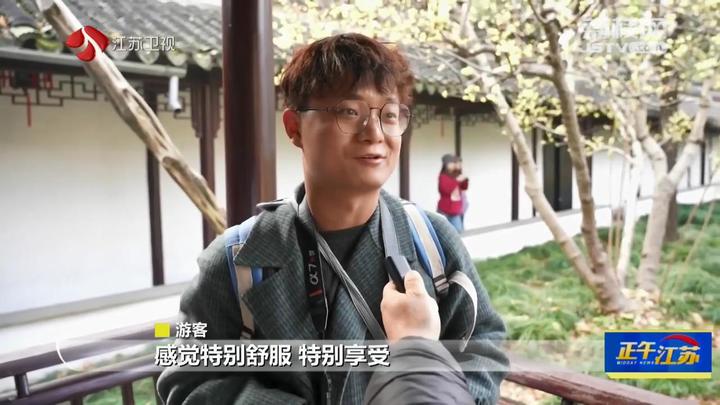 游客:“结合留园的古建筑,还有这些屋檐,感觉特别舒服、特别享受。”