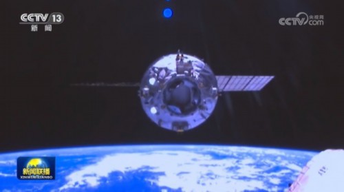 16时02分,天舟六号货运飞船从空间站组合体后向对接口撤离。