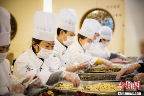 上海玉佛禅寺精选原料熬制腊八粥。玉佛禅寺供图