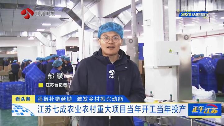 江苏台记者郝朦:“我现在是在江苏优格生物科技有限公司,这家企业也是2023年当年开工当年投产的省级农业农村重大项目。部分全新的生产线12月刚刚调试完毕,就马不停蹄地投入到春节产品订单生产中。”