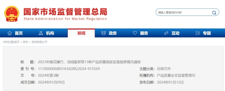 国家监督抽查情况