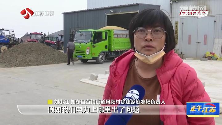 如东县苴镇街道凤阳村徐建家庭农场负责人刘小红说:“假如我们电力上哪里出了问题,哪怕是夜里,我们一个电话一打,他们马上就来了。”