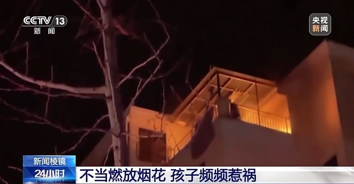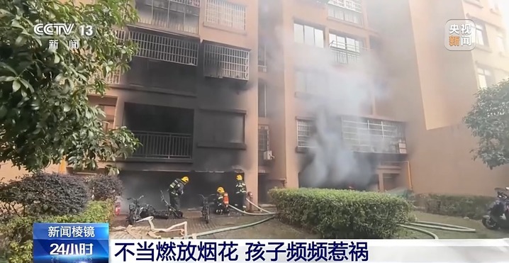 孩子在楼下玩烟花,还可能让邻居遭殃。今年1月4日傍晚六点多,浙江嘉兴海盐一小区的六楼阳台起火,火光四起,阳台的凳子和被褥全部被点燃,消防救援人员出动高压水枪才将大火扑灭。小区的公共场所视频显示,起火前,有孩子在楼下马路上玩烟花。18时25分,一名男孩点燃烟花后,一串花火径直冲着起火的阳台飞去。大约五分钟后,六楼的阳台就出现了大火。事后调查发现,这枚烟花正是这起阳台火灾的罪魁祸首。