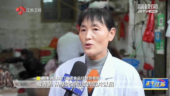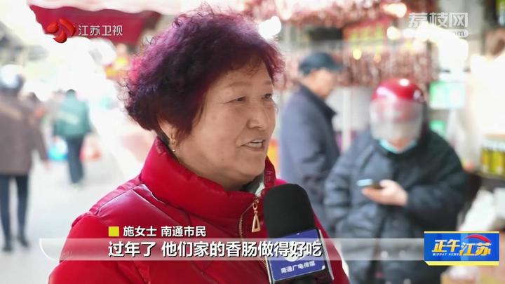 南通市民施女士说:“过年了,他们家的香肠做得好吃,我们年年到这里做的,还买了蒸糕、瓜子、花生等。”
