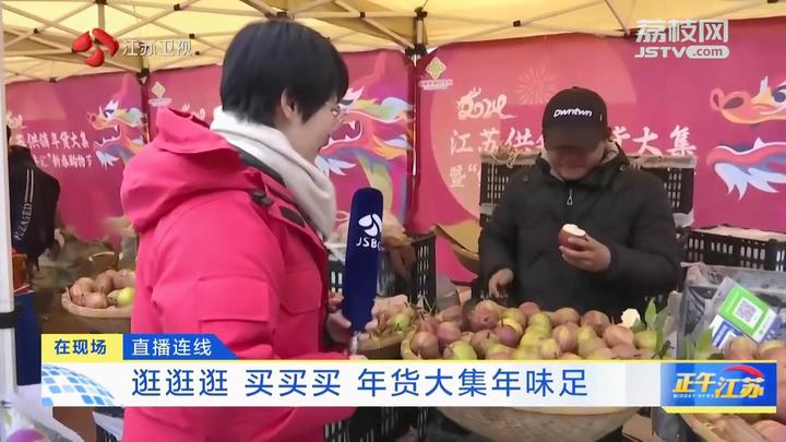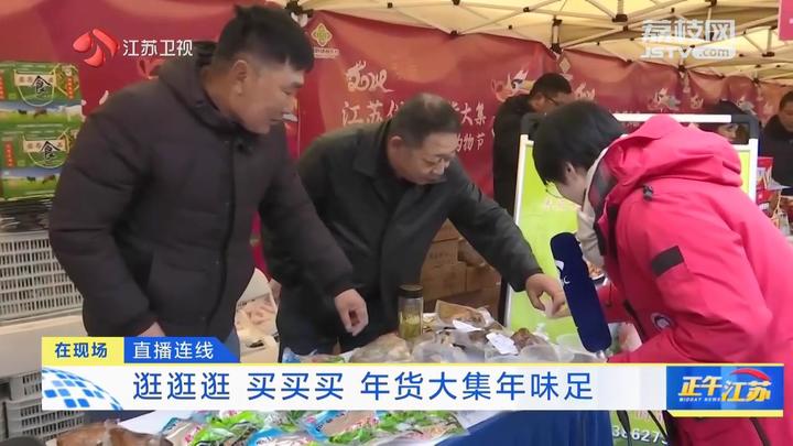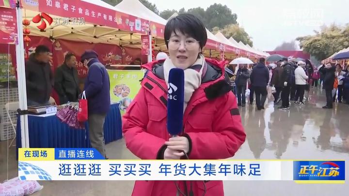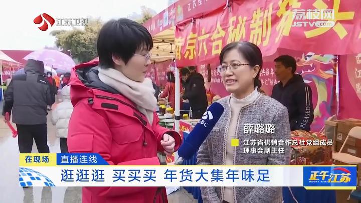 江苏台记者吴迎旋:“这边想请教一下薛主任,能不能给我们观众朋友介绍一下今年的年货大集跟往年相比,都有哪些特色?”