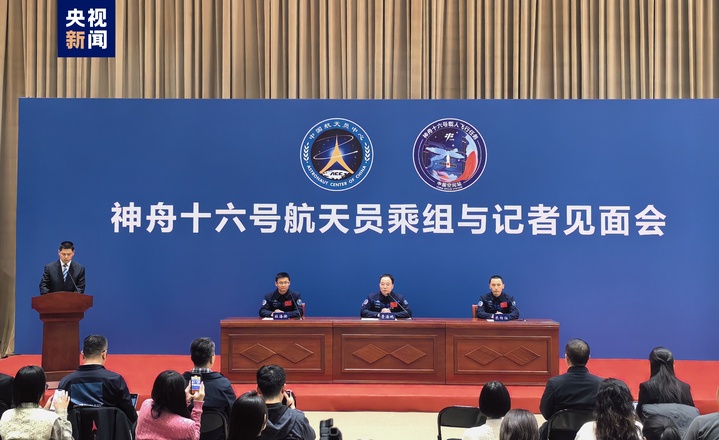2024年1月19日下午,中国航天员科研训练中心在北京航天城举行神舟十六号航天员乘组与记者见面会。景海鹏、朱杨柱、桂海潮3名航天员从太空返回80天后首次正式公开亮相。人民日报、新华社、中央广播电视总台、解放军报、载人航天工程网等20余家媒体参加见面会。