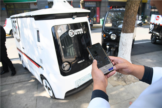 智能网联汽车是指车联网与智能车的有机联合,最终可替代人来操作的新一代汽车。2023年11月,常州首次引入无人车上路服务快递末端配送。这些无人车集L4级自动驾驶、人工智能、车联网等技术于一体,遇到行人会自动避障、会识别红绿灯进行减速,满载质量1000千克,满电续航200公里,行驶速度约25公里/小时,依托自动换电技术,可实现24小时不间断运营。