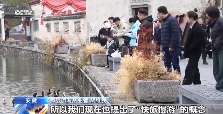 国铁上海局黟县东站站长 凌长风:从这些游客的出行当中,乘坐高铁的游客大约占50%至60%。元旦假期黟县东站每天只有8趟车次,1月10日调图后每天增加到最高23趟;后续高峰期我们还要根据运营情况适需增开列车,从能提供的座位数上分析,预计今年各假期每天可以增加一倍的游客。
