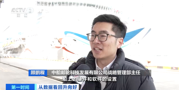 中船邮轮科技发展有限公司战略管理部主任 顾鹏程:船上硬件和软件的设置符合我们中国消费者的消费习惯,从支付系统上来讲,实现了微信和支付宝直扫的功能,应该说总体的运营情况是非常不错的,我们累计搭乘了接近1万名的乘客。