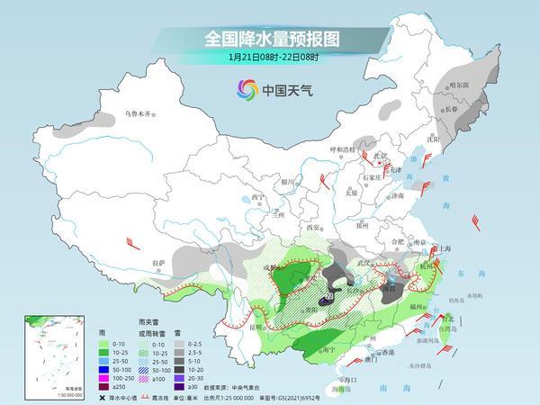 今明两天(1月21日至22日),随着寒潮大举南下,中东部将迎大范围降温,吉林东部、辽宁东部、山西中北部、浙江中南部、福建北部等地的部分地区降温可达12~16℃。同时,南方多地将开启暴雪模式,今夜至明天为雨雪最强时段,雪线最南端将抵达华南北部一带。