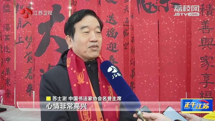 中国书法家协会名誉主席苏士澍说:“甲辰年即将到来的时候,我们来到南京为广大劳模、职工群众书写春联,心情非常高兴。祝愿南京和江苏省的广大职工朋友们新春快乐、幸福安康。”