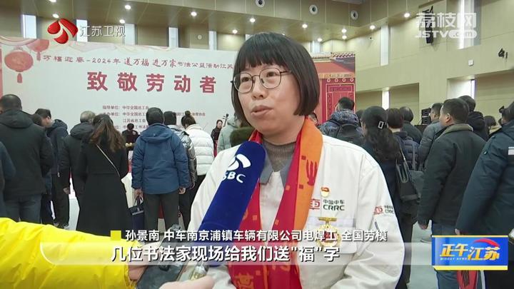 中车南京浦镇车辆有限公司电焊工、全国劳模孙景南说:“几位书法家现场给我们送‘福’字,让我们切实地感受到书法家对劳模工匠的祝福。感谢工会对我们的关心和支持,我们也会把书法家给我们的祝福带回到工作中,或者以其他方式反馈到社会,为国家做应有的贡献。”