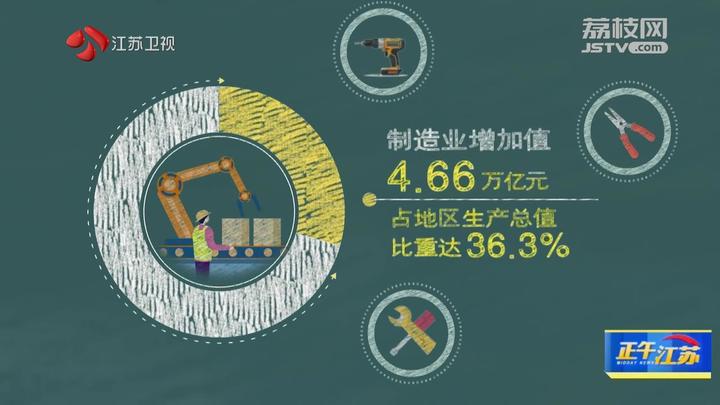 2023年,江苏现代化产业体系建设迈出新步伐。制造业增加值4.66万亿元,占地区生产总值比重达36.3%。13个设区市全部入选国家先进制造业百强市。规上服务业营业收入增长9.2%。