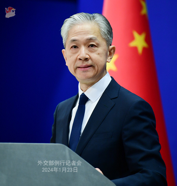 1月23日,外交部发言人汪文斌主持例行记者会。