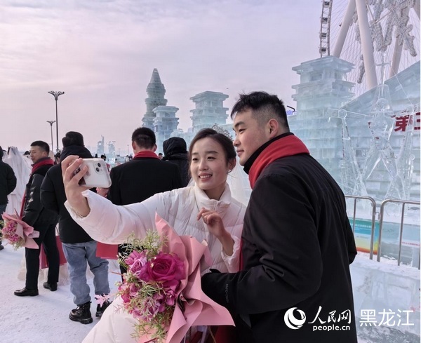 外地游客来到哈尔滨举行婚礼。人民网记者 张哲鑫摄